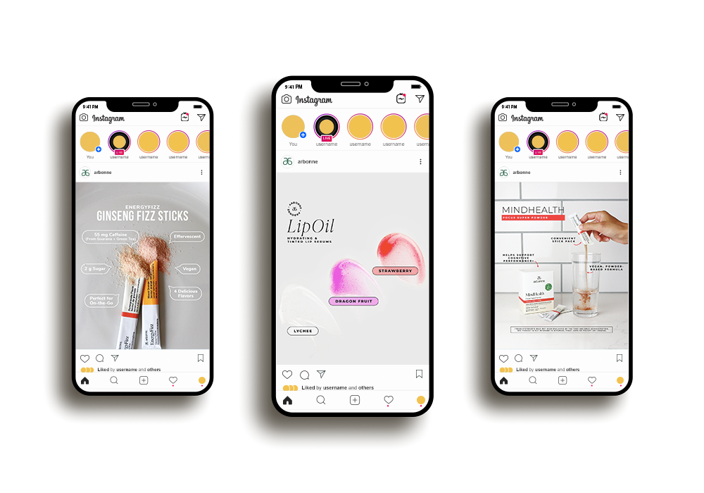 Led and designed support creative for the official Arbonne Brand Instagram account as a way to not only encourage engagement with the brand's existing audience, but also serve to increase brand awareness. As a result, posts garner between 1K–5K organic likes on average.