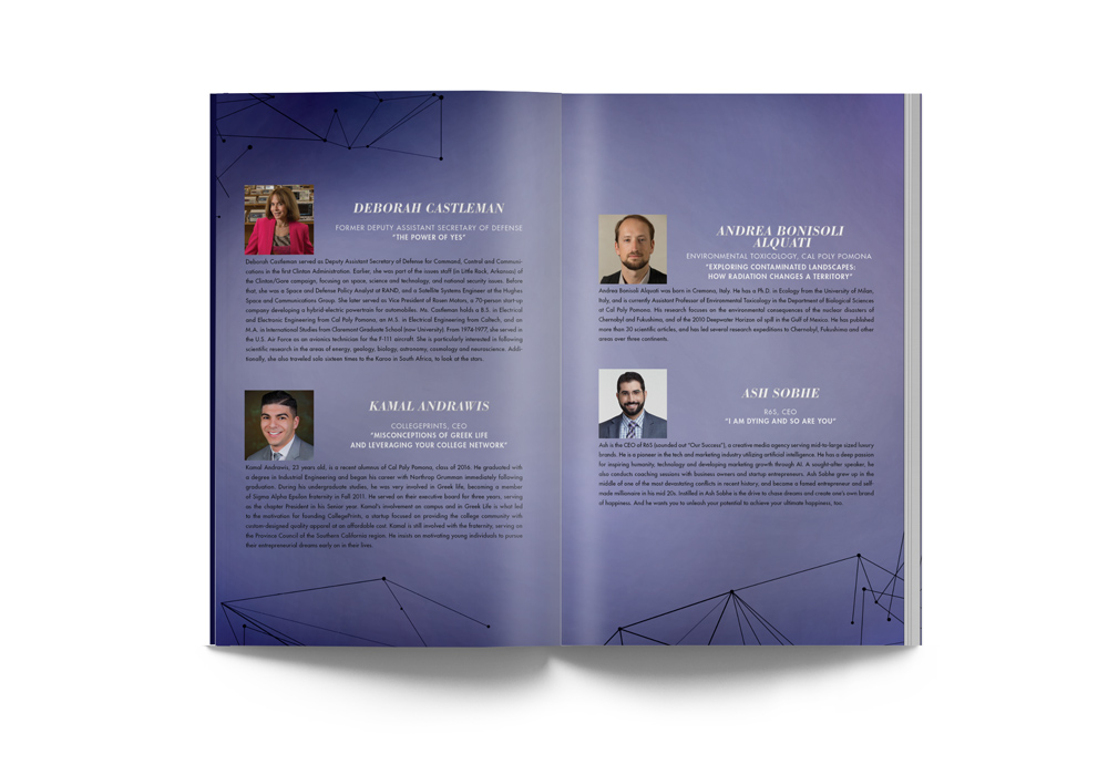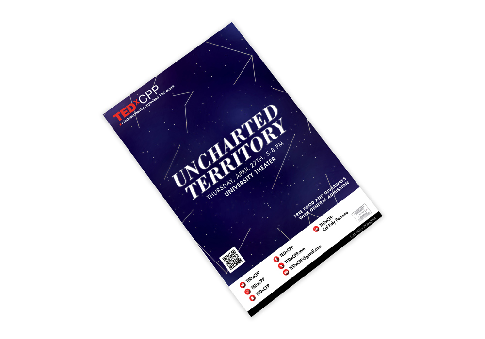 TEDxCPP was an independently organized TED event held annually at Cal Poly in Pomona. My role was responsible for conceptualizing and executing the visual branding the annual TEDx event in 2017. The visual identity was applied onto various deliverables from printed posters and programs to electronic billboards and social media assets. Over 500 people registered for and attended the event including the university president and vice president.